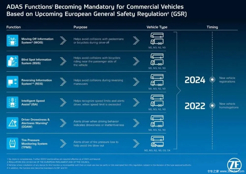 ? ? ? ? 需要說明的是,從2022年7月起,上述新配置將僅涵蓋那些剛剛上市的卡車型號。在兩年后,即2024年,這些要求將適用于所有新生產的卡車。